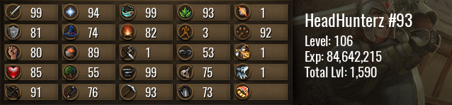 | Icon | Rank | Experience | Level | To Next Level | Until Maxed |