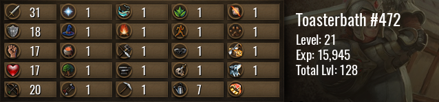 | Icon | Rank | Experience | Level | To Next Level | Until Maxed |