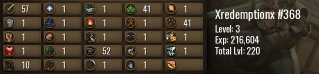 | Icon | Rank | Experience | Level | To Next Level | Until Maxed |